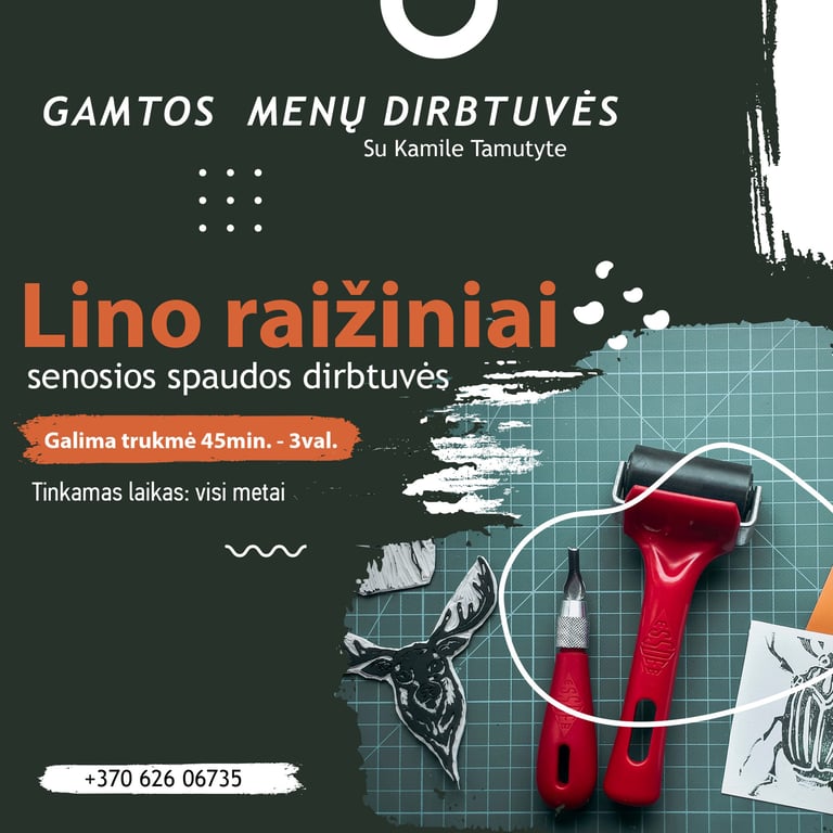 Šių metų naujai užgimusios dirbtuvės - Antotipija + Natūralūs pigmentai/dažai iš gamtos, Obelų lapų fermentavimo dirbtuvės bei Medžio raižiniai ir spauda. Taip pat, dirbtuvių sąrašas atnaujintas, pritaikytas pagal įvairius poreikius, kai kurios dirbtuvės padalintos į kelis variantus pagal sudėtingumą/trukmę/kainą.