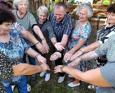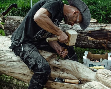 Piligrimų susibūrimai, žygiai su kultūrinė programa, kitos iniciatyvos. Nuotraukoje - sodyboje vykęs medžio drožėjų pleneras piligrimystės tema.